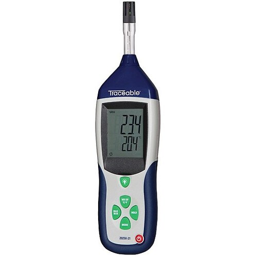 The Traceable professional thermohygrometer provides accurate and reliable readings in an ergonomic handheld design. Ideal for use in laboratories, cleanrooms, warehouses, factories, and storage areas. Plus the NIST-traceable precalibration means you get reliable measurements right out of the box, saving you time and money!