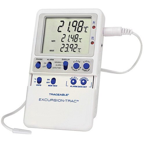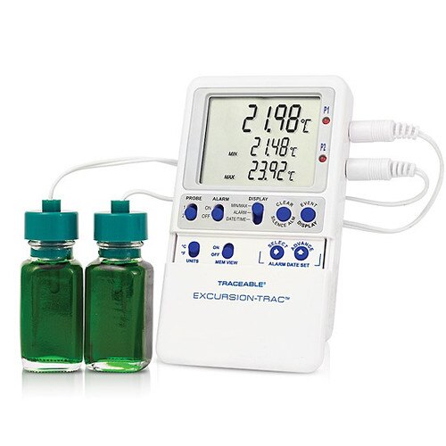 Traceable® Excursion-Trac™ Alarm Memory Datalogging Digital Thermometer with 2 bottle probes, –58.00 to 158.00°F (–50.00 to 70.00°C) with a NIST Traceable® Calibration Certificate, VFC (each)