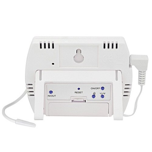 Alarm feature provides alert when temperature rises above or falls below a set point. Alarm is programmable in 1° increments. Ten-foot micro-cable permits refrigerator doors to close on it.