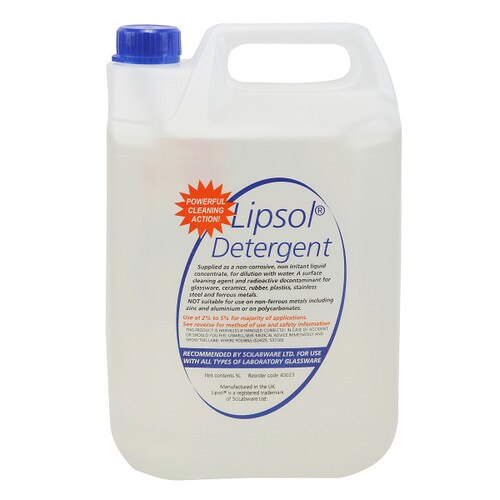 With a cleaning performance second to none, new Lipsol marks the arrival of the next generation of laboratory detergent. Lipsol is a non-corrosive, fully biodegradable liquid concentrate, suitable for use with all types of laboratory glassware, ceramics, plastics, rubber, stainless steel and ferrous metals. Lipsol is a highly alkaline mixture of detergent, surfactant and chelating agent suitable for removal of most types of contamination by soaking or use in an ultrasonic bath; not for use in a dishwasher.