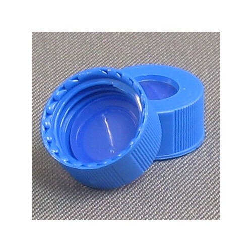 JG Finneran 9mm Royal Blue R.A.M. Ultra Low Bleed Smooth Bonded Clear PTFE/Blue Silicone Lined Open Hole Cap with Slit for Mass Spec