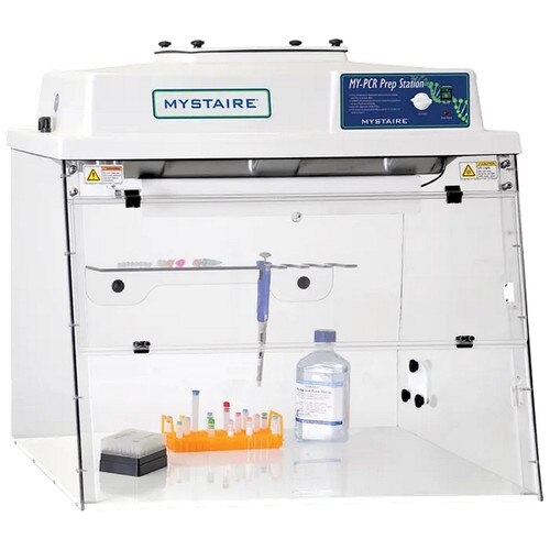 Mystaire® MY‑PCR prep stations are compact laminar flow enclosures that reduce the risk of sample contamination while performing polymerase chain reaction experiments.