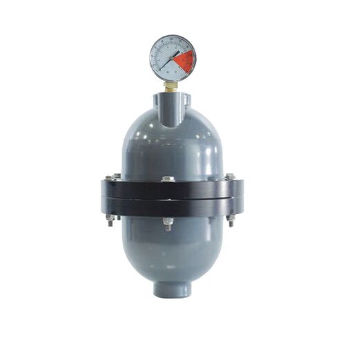 Pulsation dampeners are used to improve pump system efficiency by removing pulsating flows from positive displacement pumps, insuring a smooth and continuous fluid flow and meter accuracy, eliminating pipe vibrations and protecting gaskets and seals. The result is a longer lasting and safer system. Pulsation dampeners are installed on the discharge side of positive displacement pumps to remove the pulsating flow caused by the start and stop action of the pump. Dampeners ensure a smooth and continuous flow, eliminate pipe vibration and protect in-line instrumentation.