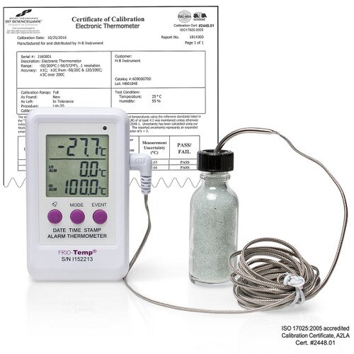 -50 to 200°C FRIO-Temp Precision Electronic Verification Thermometer with a 30ml Glass Bottle Probe and a NIST traceable Calibration Certificate (each)