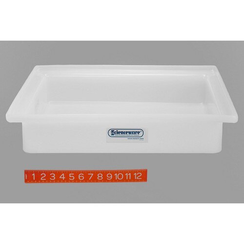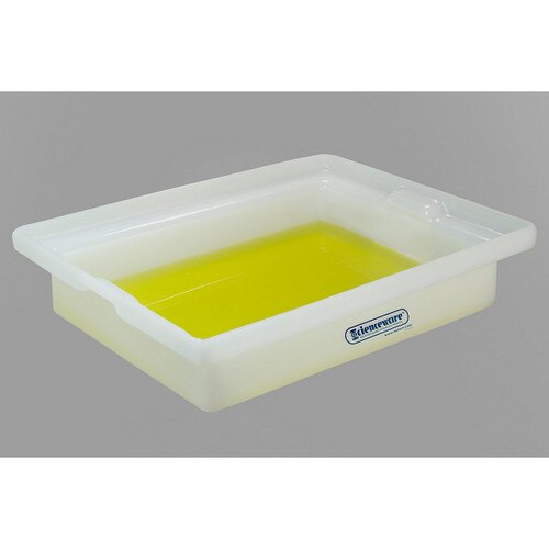 Molded low-density polyethylene tray is rugged, long-lasting and corrosion-resistant. All trays have heavy walls and wide, top flanges. Will withstand temperatures up to 77°C (171°F).