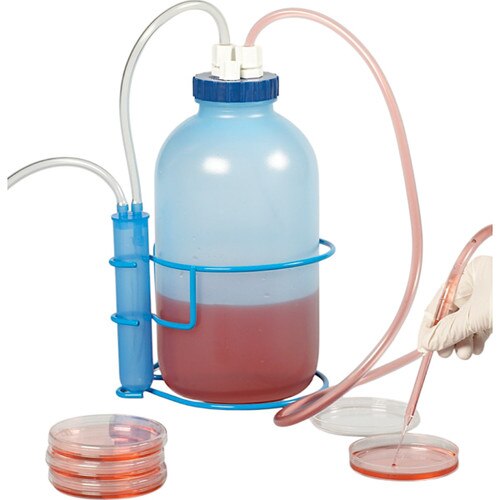 For effortless, continuous vacuum aspiration of a variety of liquids, including tissue culture media, supernatants, and chemical wastes. Connect a disposable pipette tip, Pasteur pipette or other suitable tip to the flexible collection tubing (¼" ID X ⅜" OD), then connect the vacuum line to vacuum source and the aspirator is ready for continuous vacuum aspiration from Petri dishes, microtiter plates, flasks, centrifuge tubes, and more.