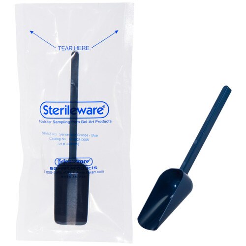 SP Bel-Art Sterileware Metal Detectable Sterile Sampling Scoop; 125ml (4oz), Plastic, Individually Wrapped, Blue (Pack of 100)