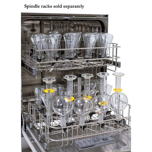 • Spindle rack ready models accommodate direct injection spindle racks (sold separately) for thorough cleaning inside narrow-neck glassware.