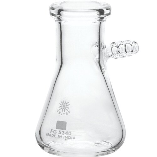 Pack of six borosilicate glass filtering flasks with 25ml capacity. Heavy-walled flasks feature a heavy-duty rim and bolt neck ideal for vacuum filtration. Graduations are printed in durable white enamel. United Scientific flasks deliver an unbeatable combination of thermal shock resistance and physical strength.